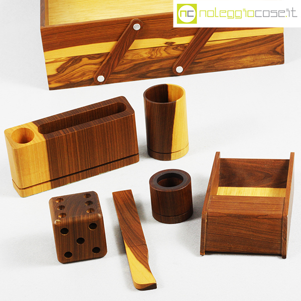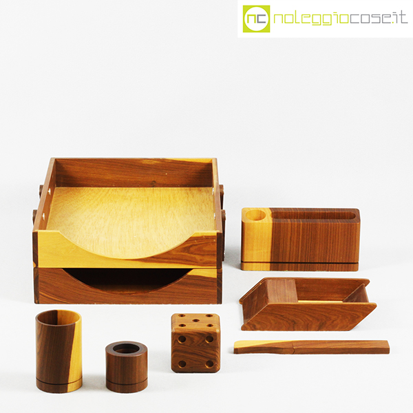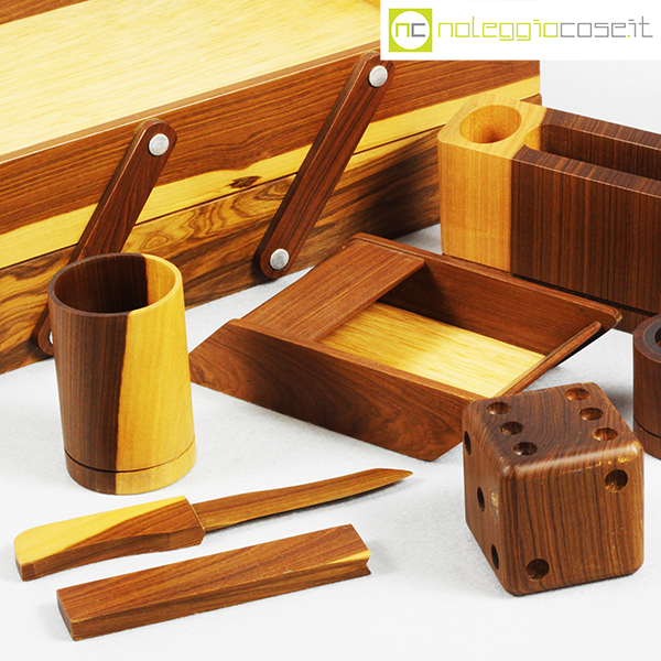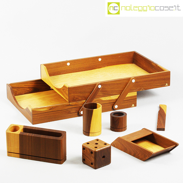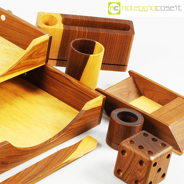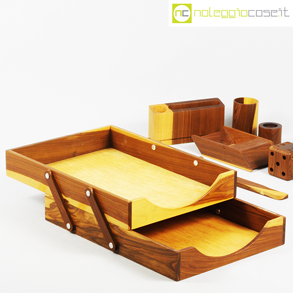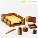 Complementi da scrivania in legno, 1980 circa, dimensioni varie, portadocumenti cm 27x36x10