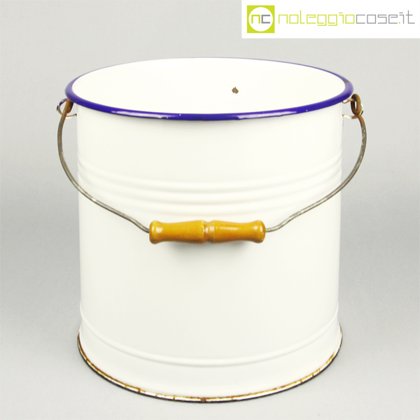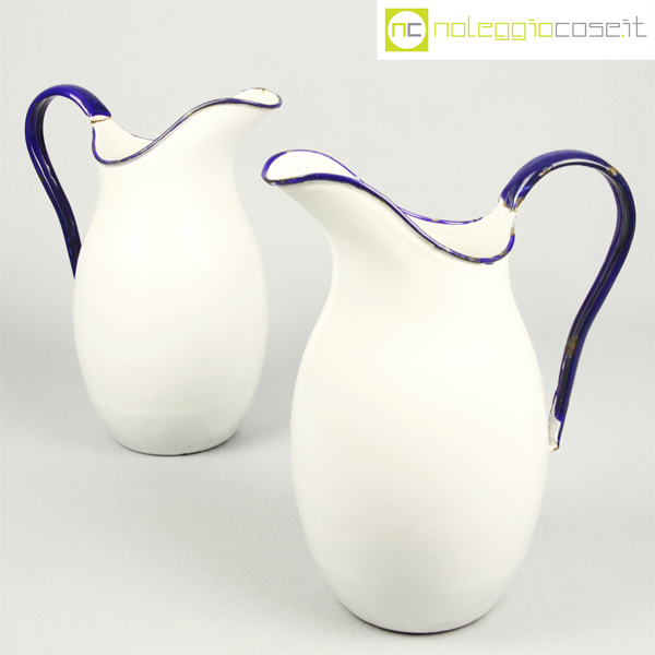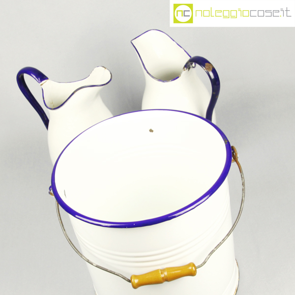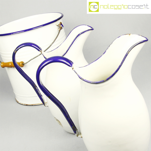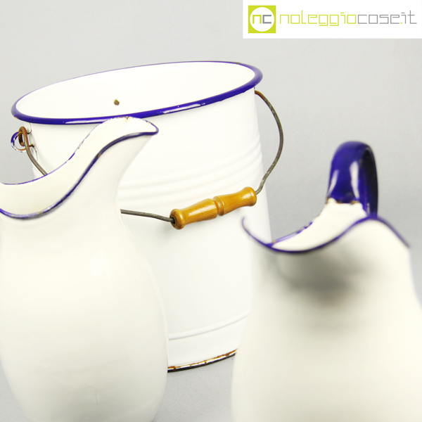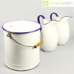 Contenitori in latta smaltata 03: secchio e brocche, secchio cm 26x26x27, brocche cm 22x12x27