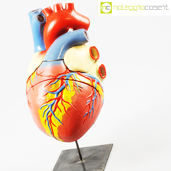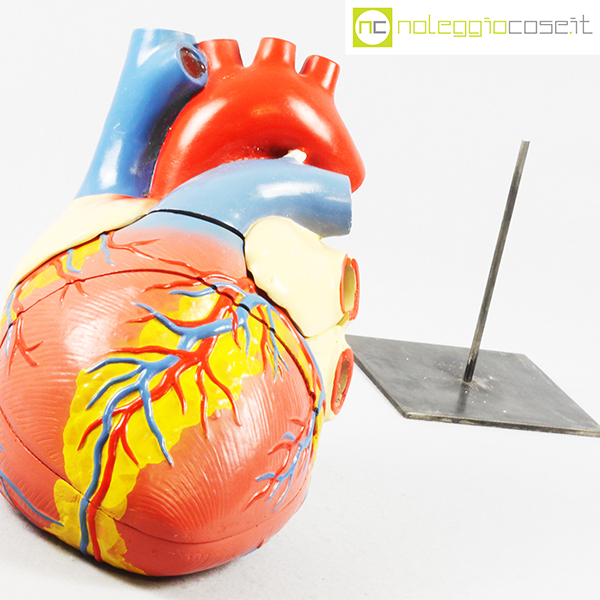 Cuore in gesso, modello anatomico con base, cuore circa cm 19x23x27, altezza su base cm 43