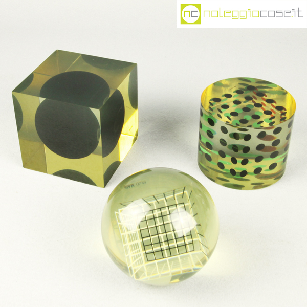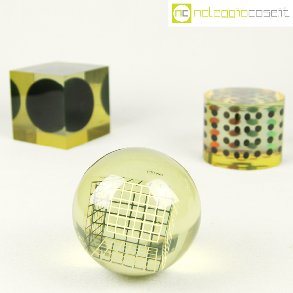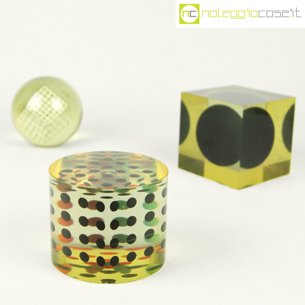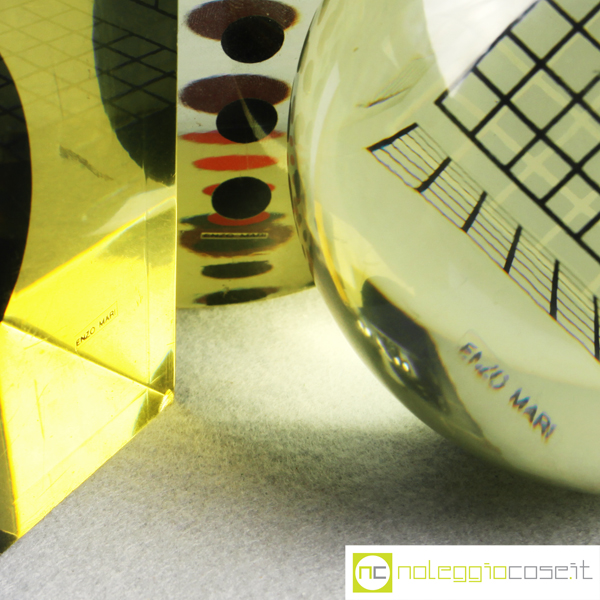 Danese Milano, Cubo, Cilindro, Sfera, Enzo Mari, 1959, cubo cm 10x10x10, cilindro cm 10x10x8, sfera 10x10x10
