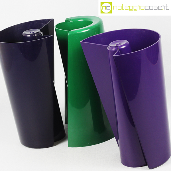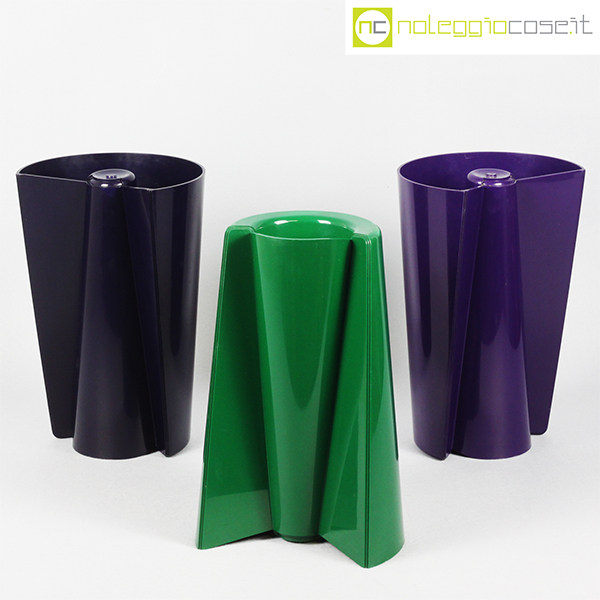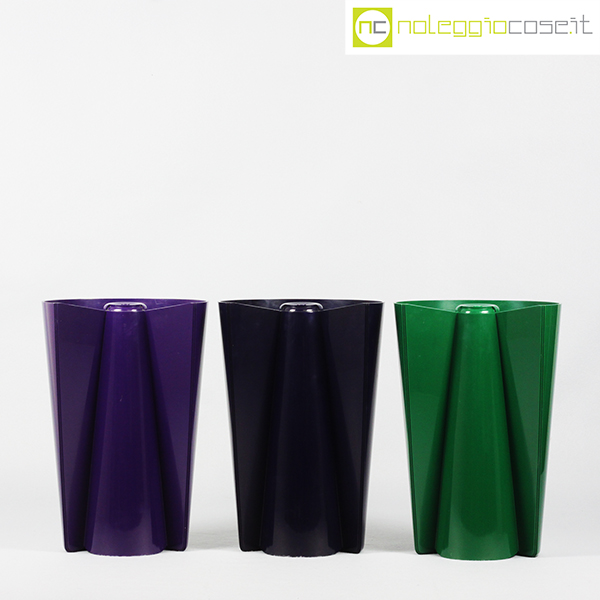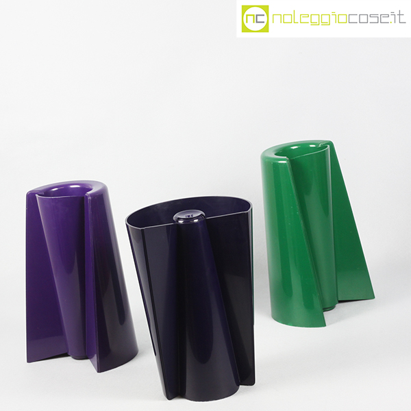 Danese Milano, vasi Pago Pago, blu, verde e viola, Enzo Mari, 1969, cm 20×13 – h 30