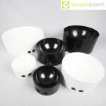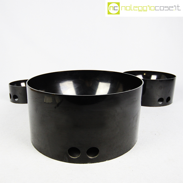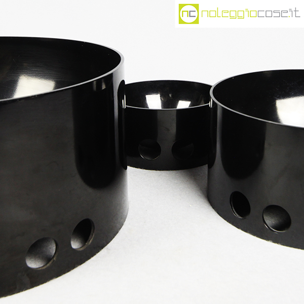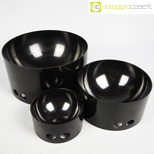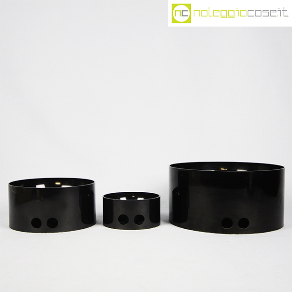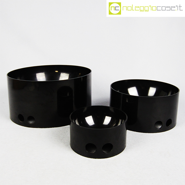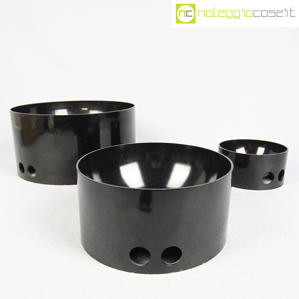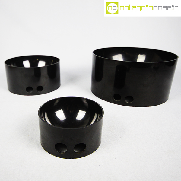 Danese Milano, portaoggetti Tongareva neri, Enzo Mari, 1969, mod. piccolo cm 12x12x6, mod. medio 18x18x9
