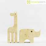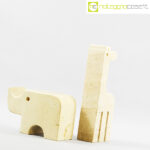 Elefante e giraffa in travertino, 1960, elefante cm 18×7,x11,5, giraffa cm 8×5,5×26
