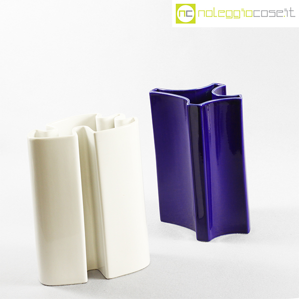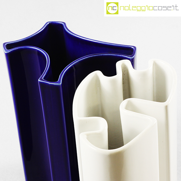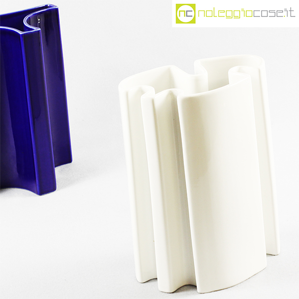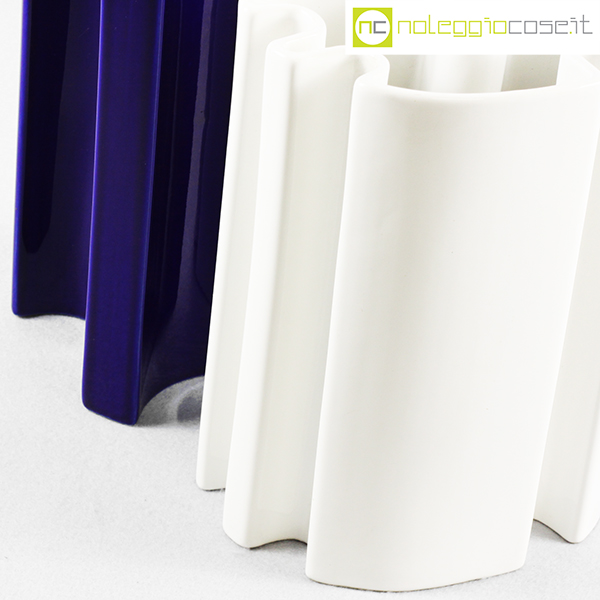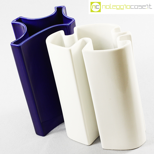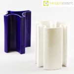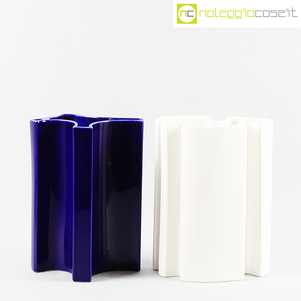 Ceramiche Brambilla, vasi alti, set blu e bianco, Angelo Mangiarotti, 1968, blu cm 19x15x25,5, bianco cm 19x12x25,5