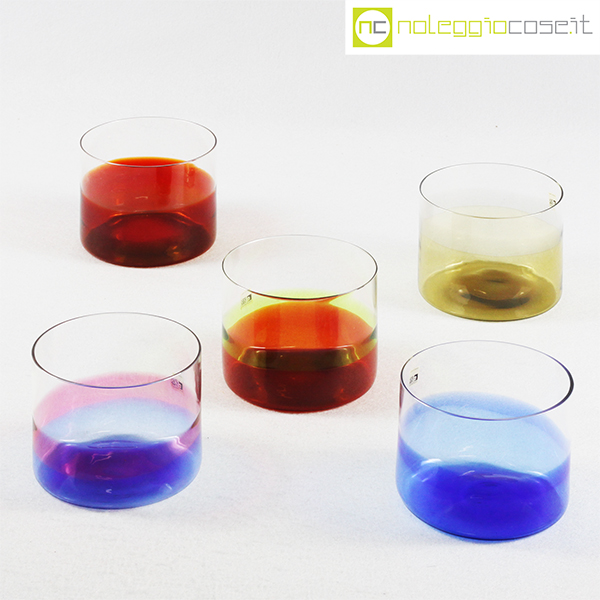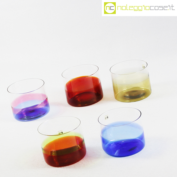 Fratelli Toso Vetreria, grandi bicchieri in vetro colorato, anni ’80 circa, cm 10×10 – h 8