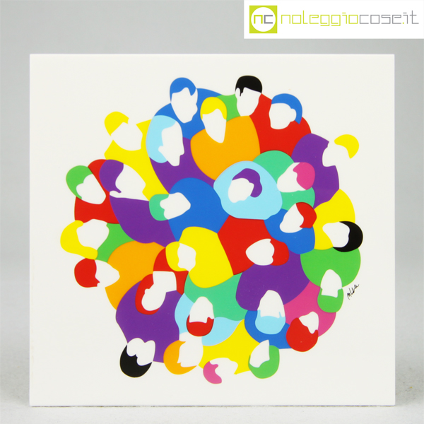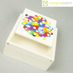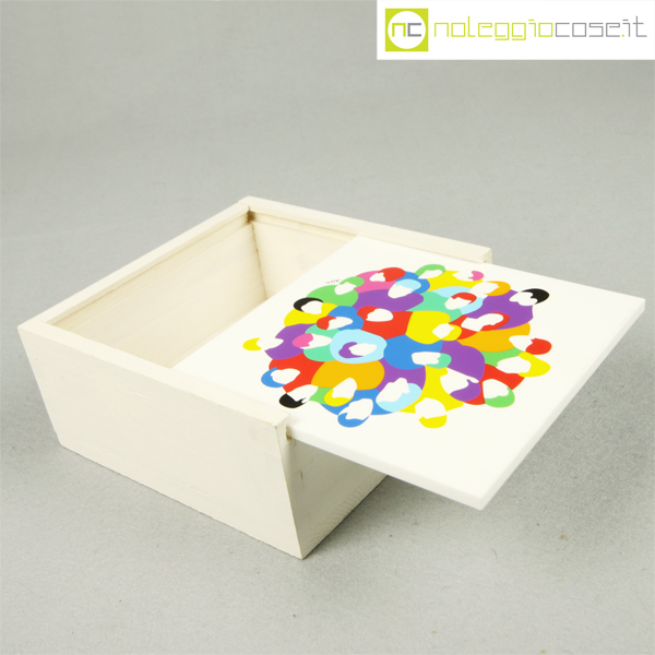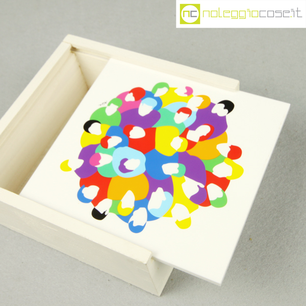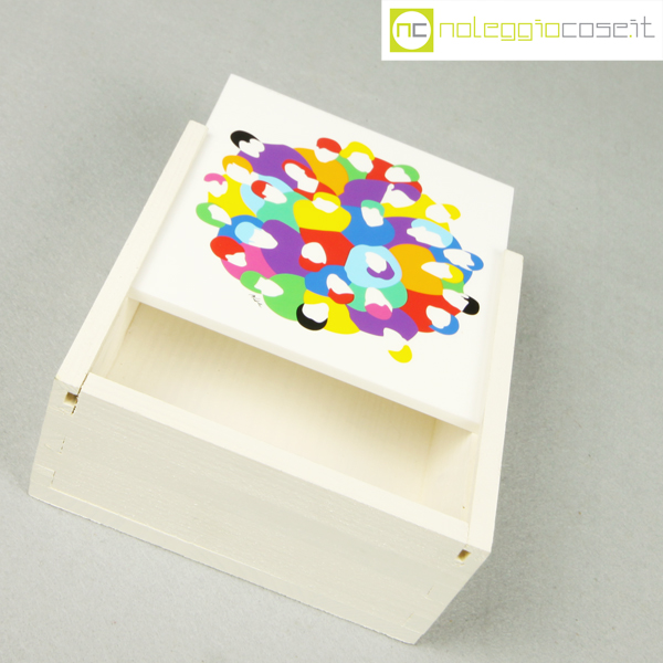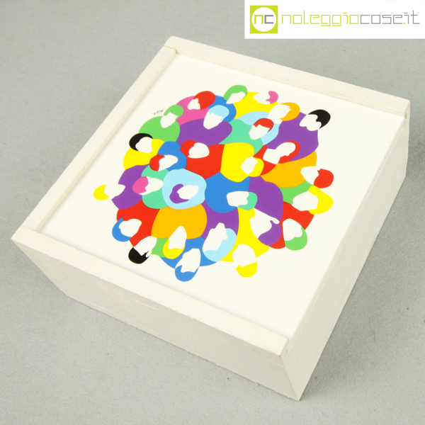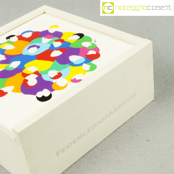 Federlegno Arredo, scatola con coperchio serigrafato, Marco Lodola, 1990, cm 14×14 – h 6