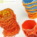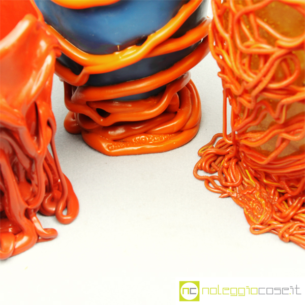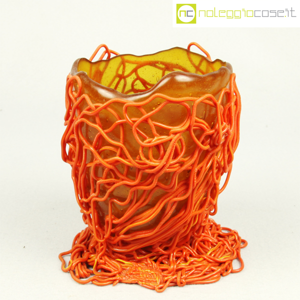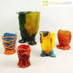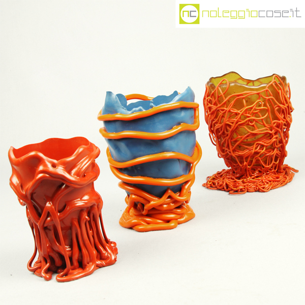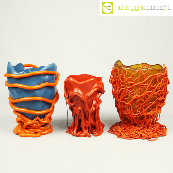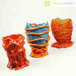 Fish Design, vasi Medusa, Pompito, Spaghetti, Gaetano Pesce, 2004, Medusa (rosso) 10x10x13, Pompitou (blu/arancio) 12x12x17, Spaghetti (giallo/arancio) 13x13x16
