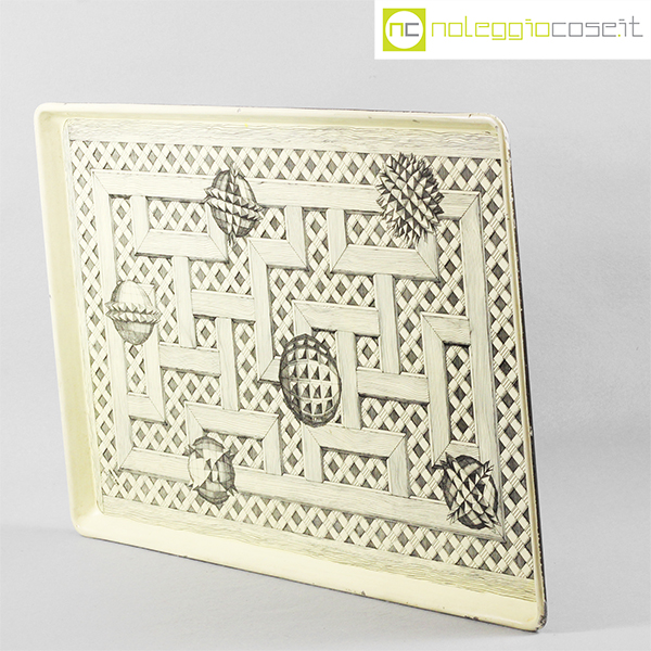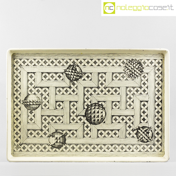 Fornasetti, grande vassoio con decori, Piero Fornasetti, 1990, cm 65×45,5