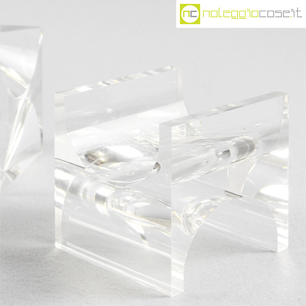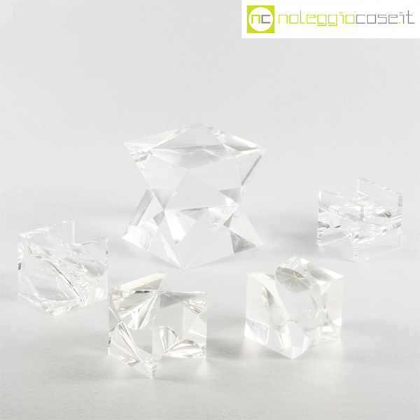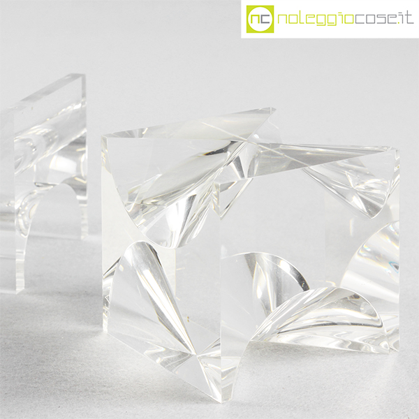 Fusina, ferma carte cubi scultura in plexi, set 01, Alessio Tasca, 1970, cm 8×8 – h 8