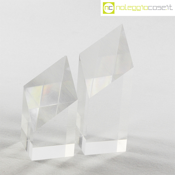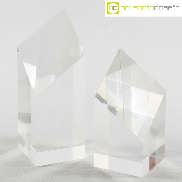 Fusina, oggetti fermacarte a sezione obliqua, Alessi Tasca, 1970, alto cm 8x8x22,5, basso cm 8x8x17