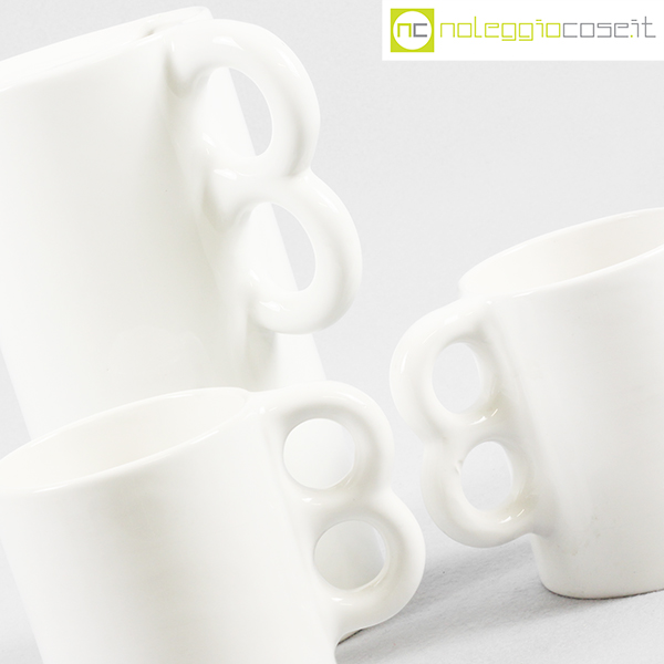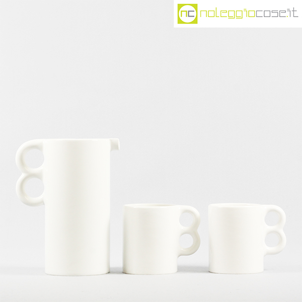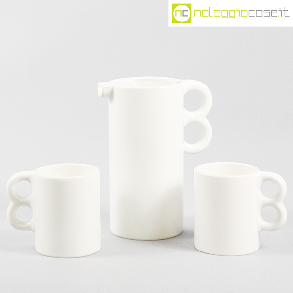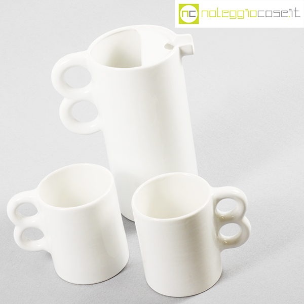 Gabbianelli, brocca e coppia tazze bianche, Liisi Beckmann, 1970, brocca cm 18x11x23, tazze cm 13x9x11,5