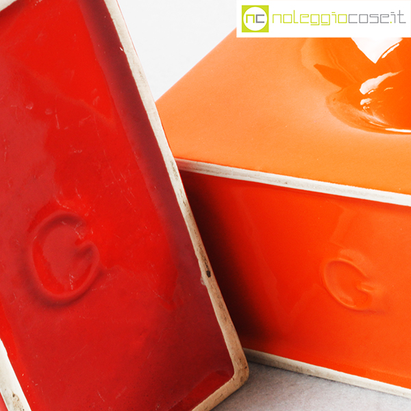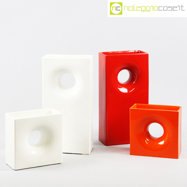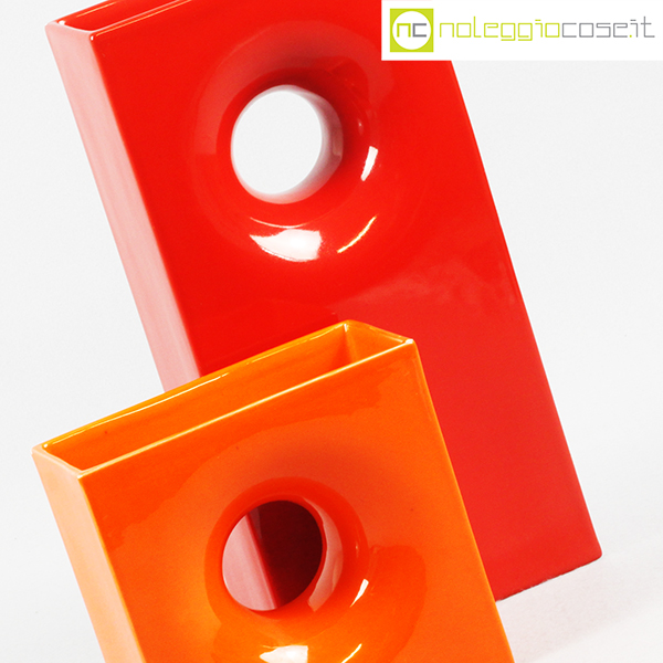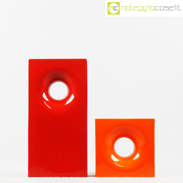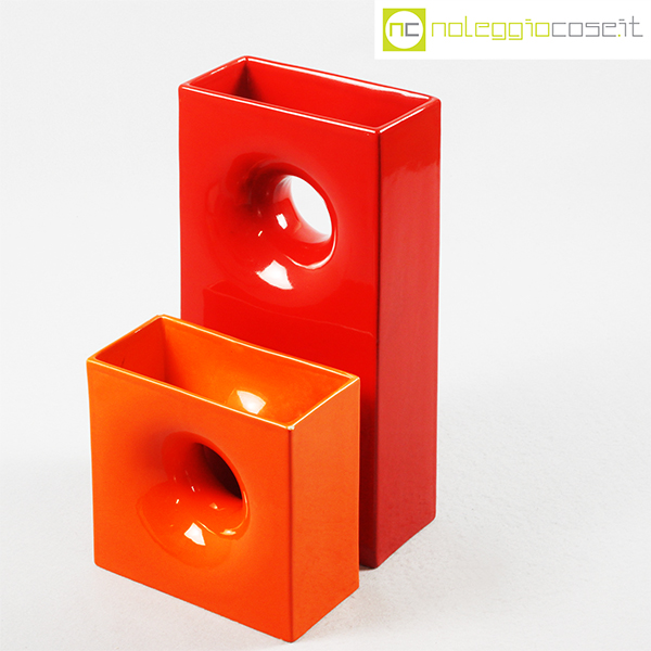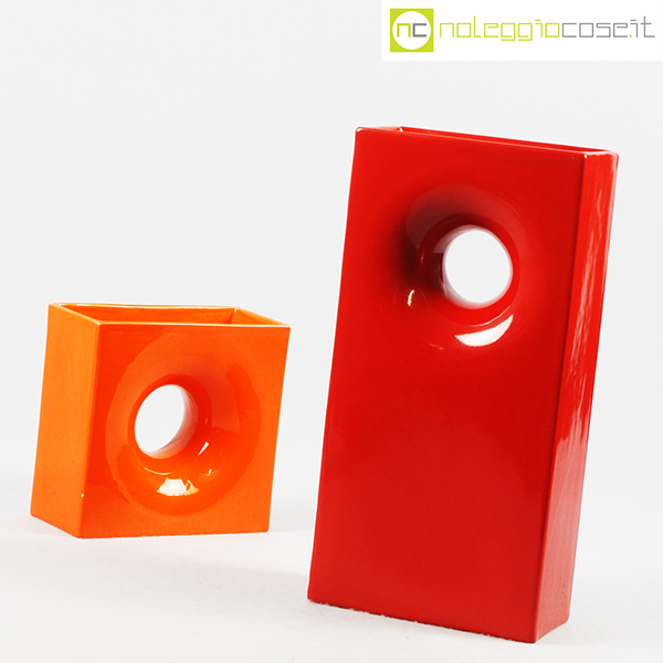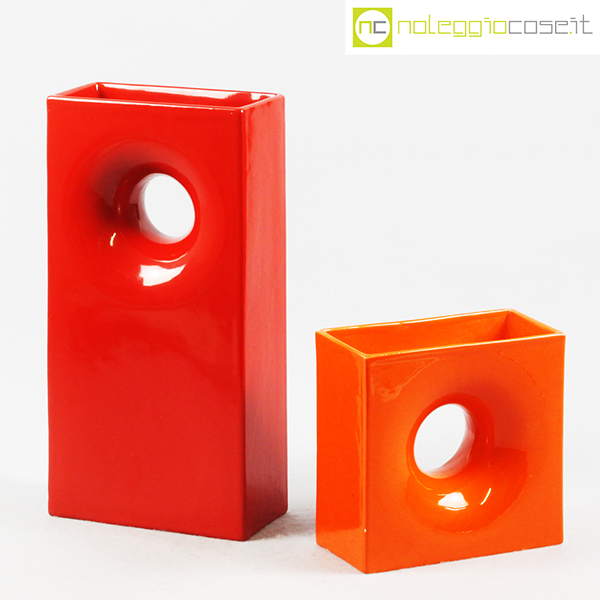 Gabbianelli, coppia vasi colorati con foro, Franco Bettonica, 1970, alto cm 16x8x32, basso cm 16x8x16