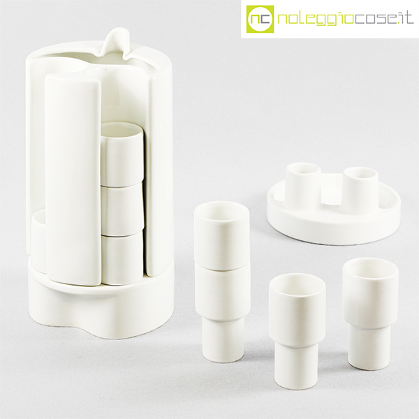 Gabbianelli, set da tavola impilabile, anni ’70, set impilato cm 16×16 – h 32, bicchieri h 10,5
