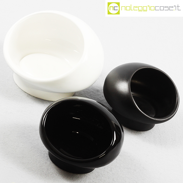 Gabbianelli, set posacenere Progetto102 bianco e nero, Studio OPI, 1970, grande cm 15x15x11, piccoli cm 11x11x8