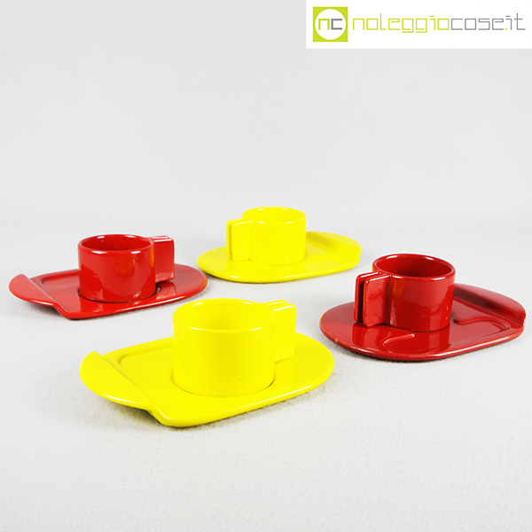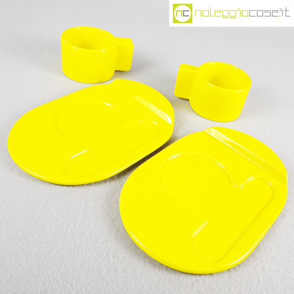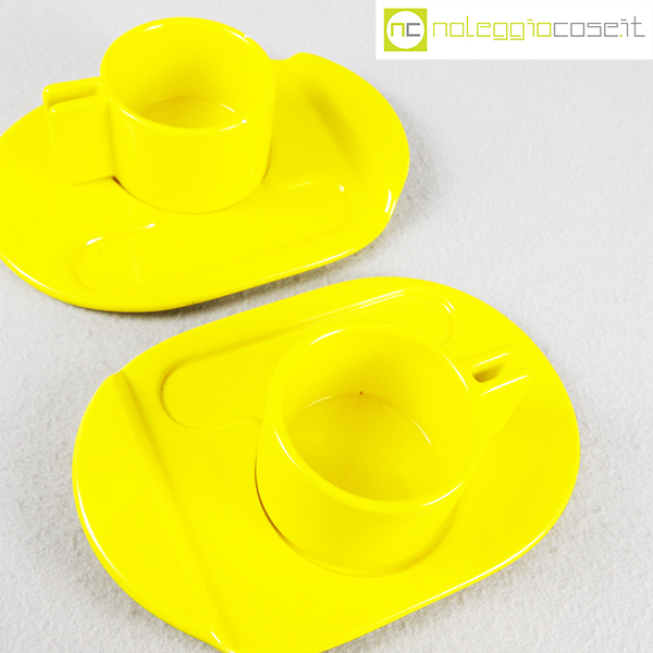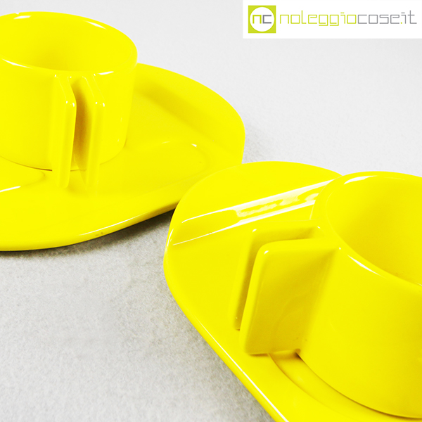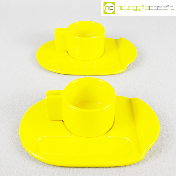 Gabbianelli, coppia tazze gialle con piattino serie Liisi, Liisi Beckmann, 1970, piattino cm 21×15, tazza cm 10,5x8x5,5