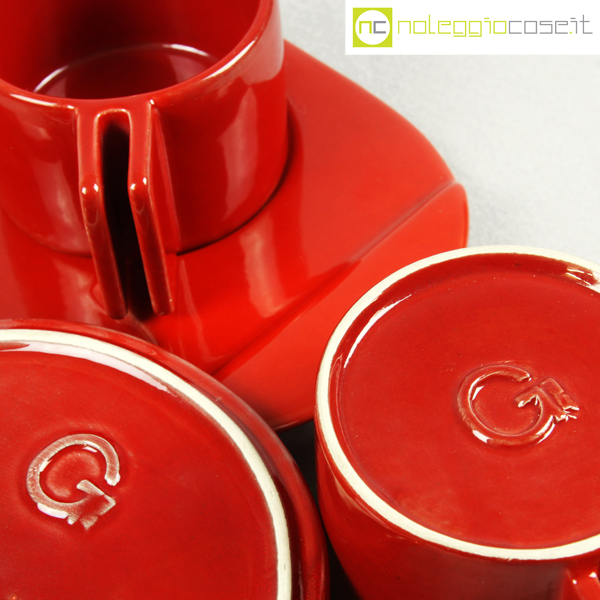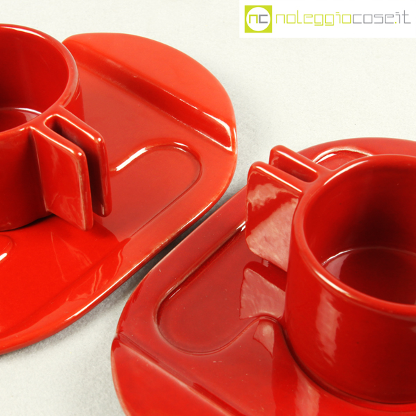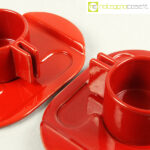 Gabbianelli, coppia tazze rosse con piattino serie Liisi, Liisi Beckmann, 1970, piattino cm 21×15, tazza cm 10,5x8x5,5 designerproduttoreperiodoinfo@noleggiocose.it