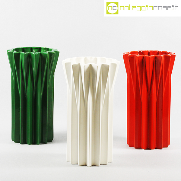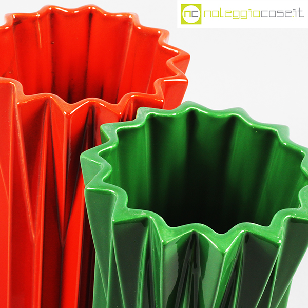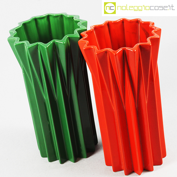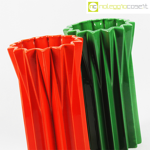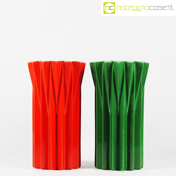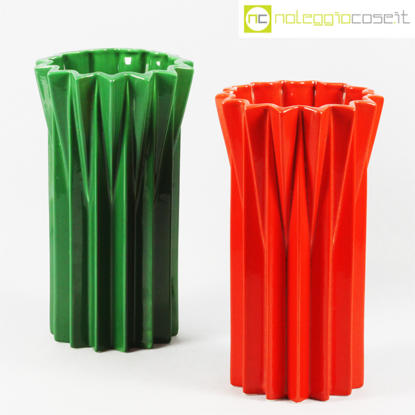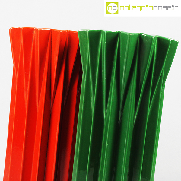Gabbianelli, vasi a spicchi verde e rosso, Franco Bettonica, 1970, cm 17×17 – h 30