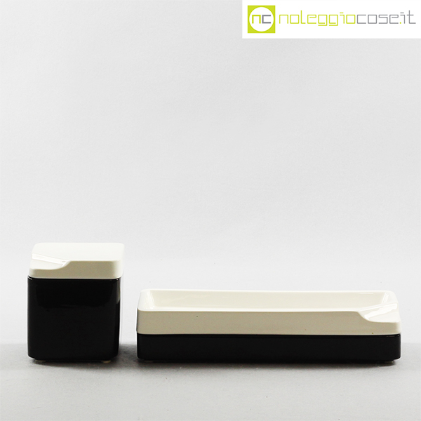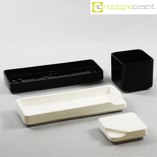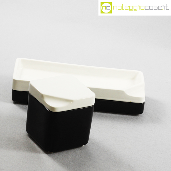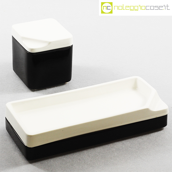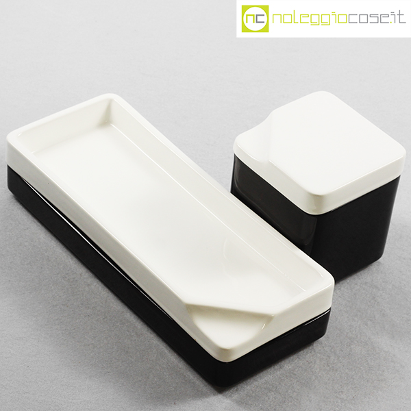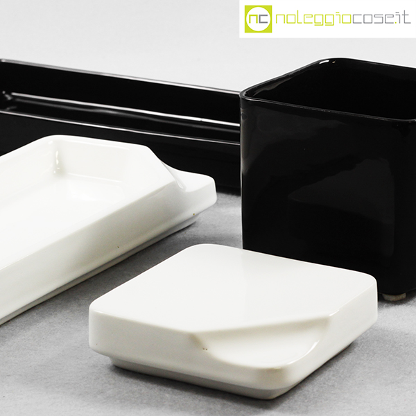 Gedy, contenitori in ceramica bianco nero, Makio Hasuike, 1970 (circa), quadrato cm 10x10x11, rettangolare cm 28x11x6
