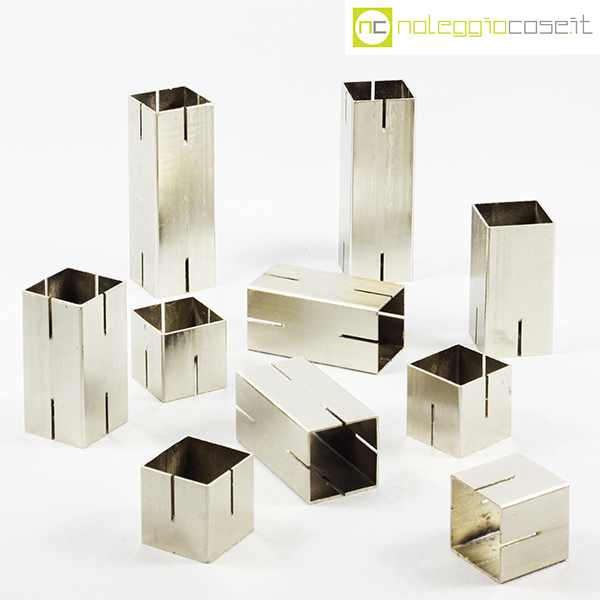Gioco a strutture componibili in metallo, strutture lunghe 5x5x15 (2pz.), medie cm 5x5x10 (4pz.), corte cm 5x5x5 (4pz.)