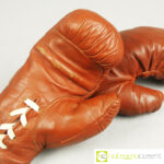 Guantoni da boxe in pelle anni ’50, 1950, cm 22x12x9 (guantoni da bambino)