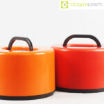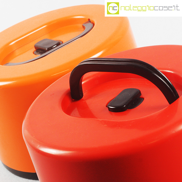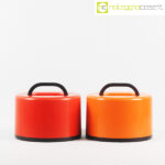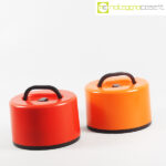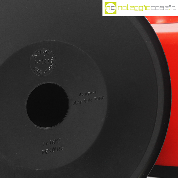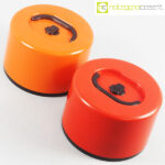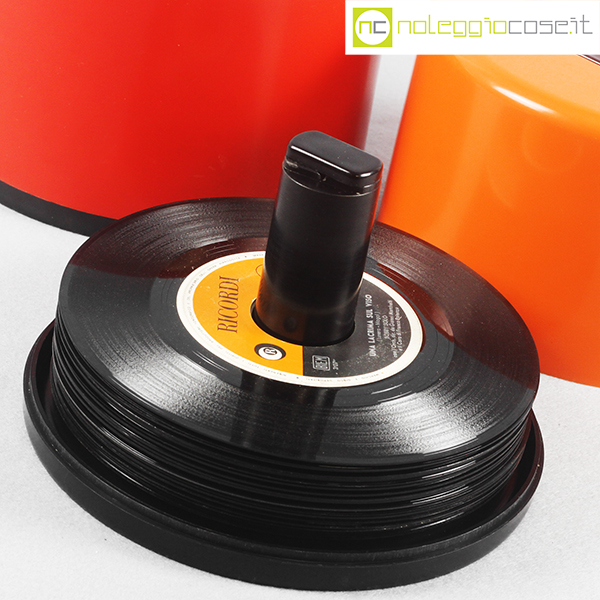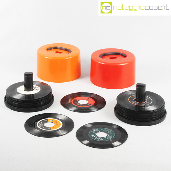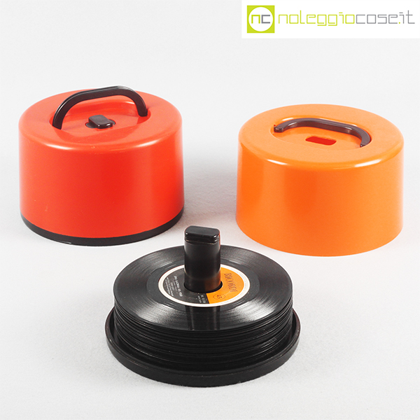 Kartell portadischi arancione e rosso, Olaf Von Bohr, 1970, cm 19×19 – h 12,5