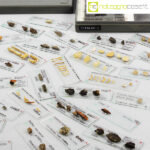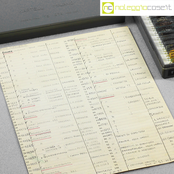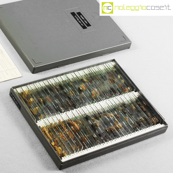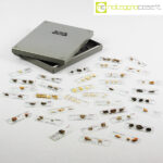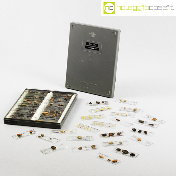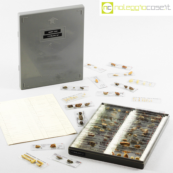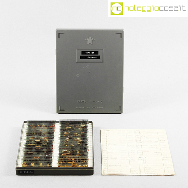 Kartell, scatola con vetrini per microscopio, Centrokappa, 1979, box cm 23×18,5×3,5, vetrini cm 7,5×2,5