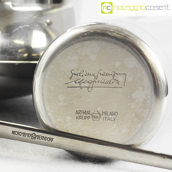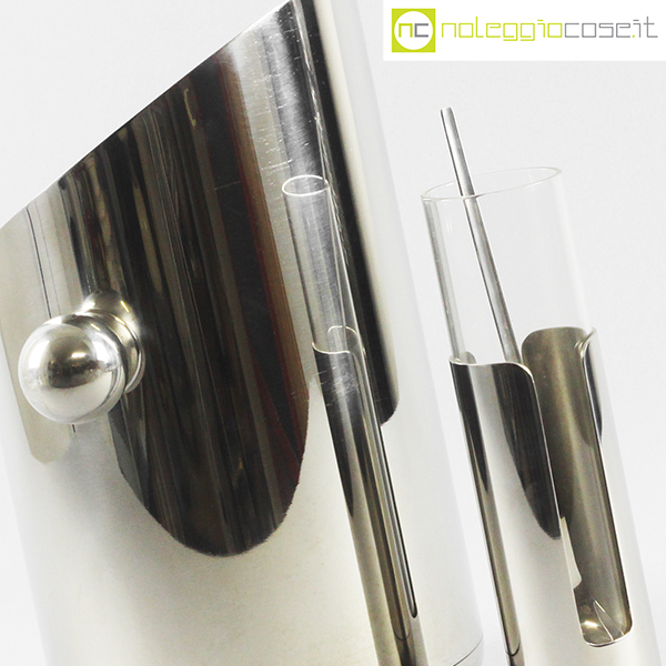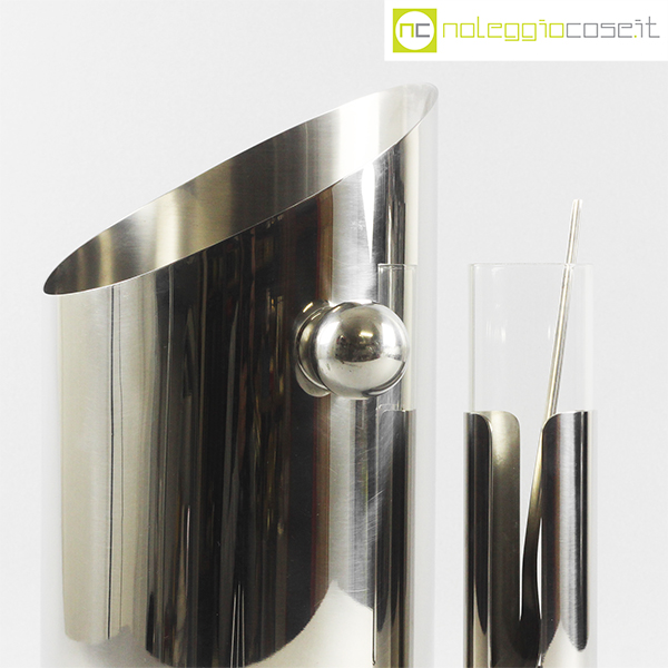 Krupp Milano, set da bar serie Linea dell’Orso, Giuliana Gramigna, Sergio Mazza, 1974, porta mescolatore cm 6x6x23, secchiello porta bottiglia cm 26x18x32, cucchiaio cm 23