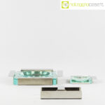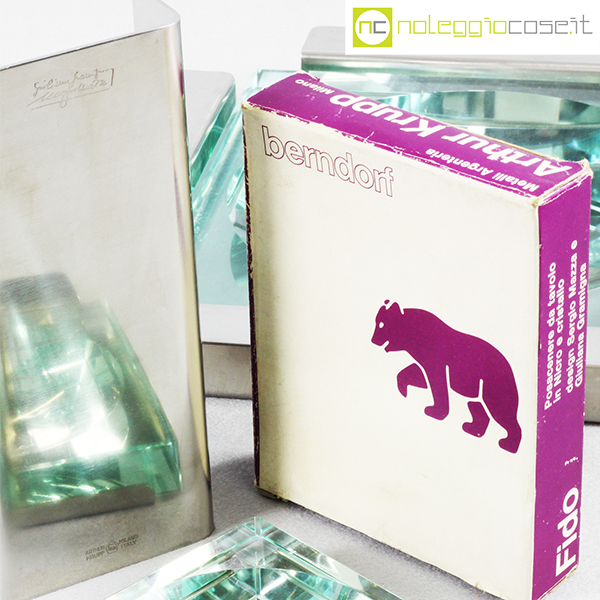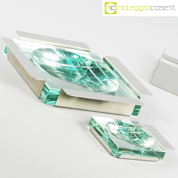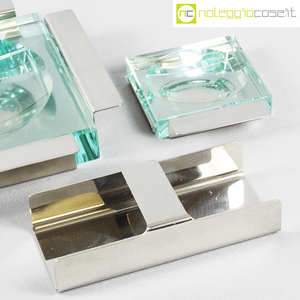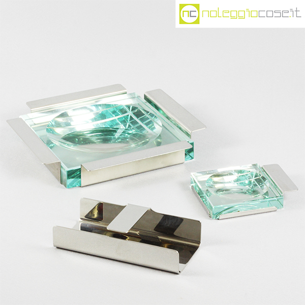 Krupp Milano, posacenere e vassoio Linea dell’Orso, Giuliana Gramigna, Sergio Mazza, 1974, posacenere grande cm 25,5×25,5×4, piccolo cm 12,5x10x2, vassoio cm 17x8x4