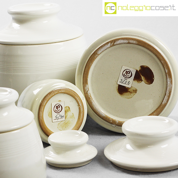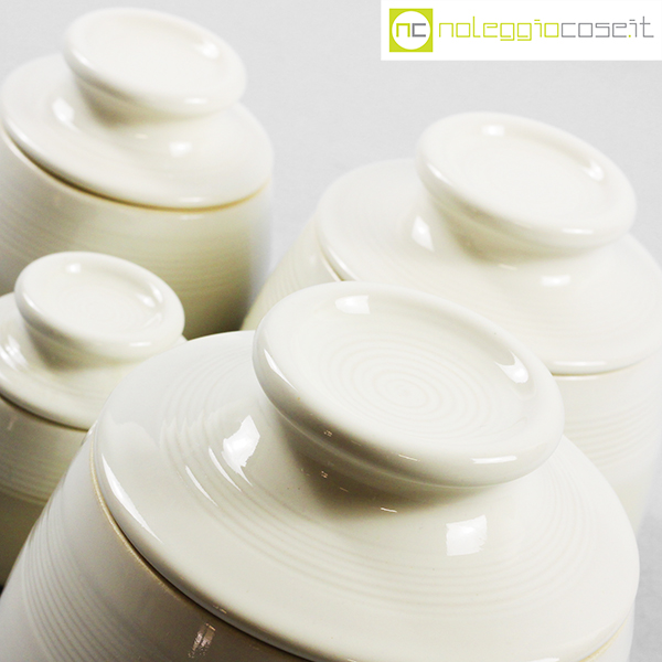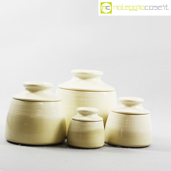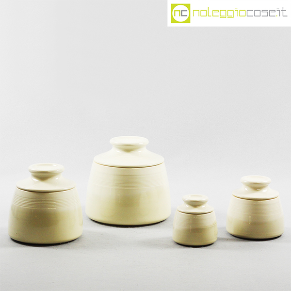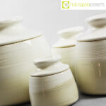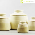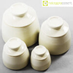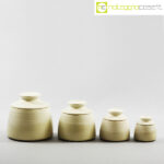 Laboratorio Pesaro, set barattoli con tappo, Franco Bucci, 1979, barattolo XL cm 16x16x15, L cm 13x13x12,5, M cm 10,5×10,5×10, S cm 8x8x8