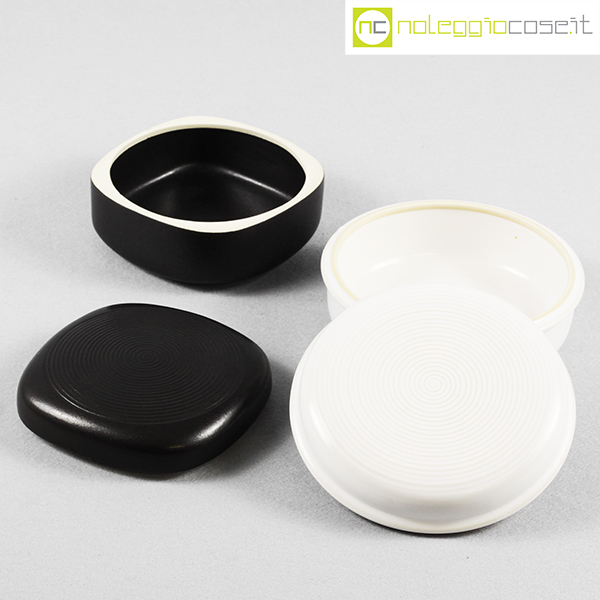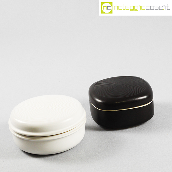 Laboratorio Pesaro, scatola bianca e nera, Franco Bucci, 1978, bianca cm 16x16x8, nera cm 13x13x7,5