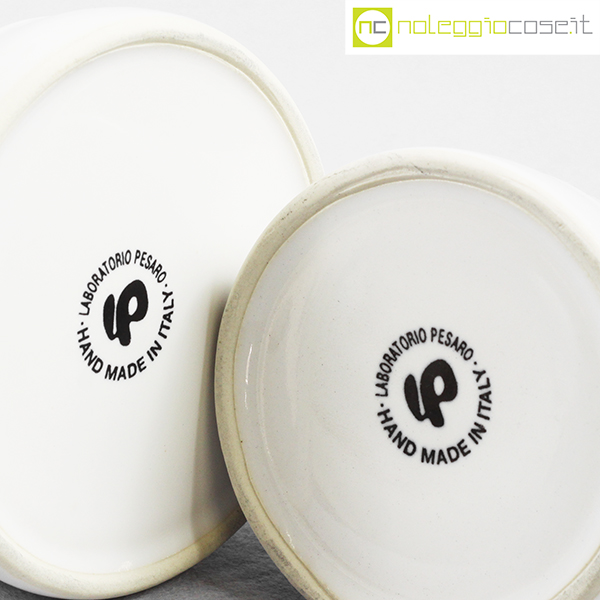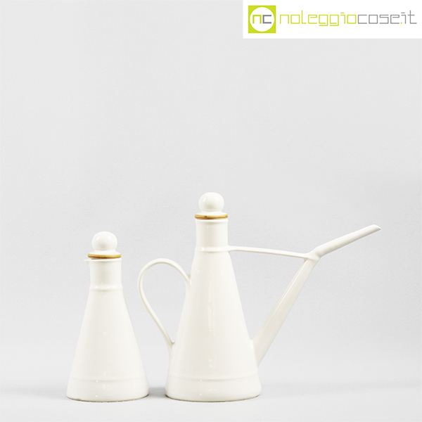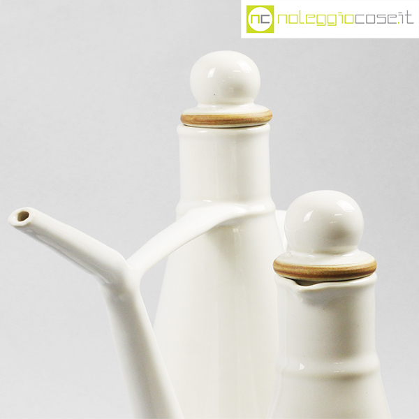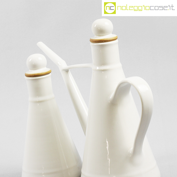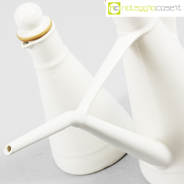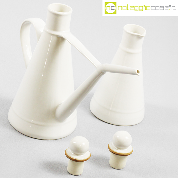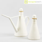 Laboratorio Pesaro, set olio e aceto in ceramica bianco, Franco Bucci, 1990, oliera cm 27×10,5×22, acetiera cm 9x9x18