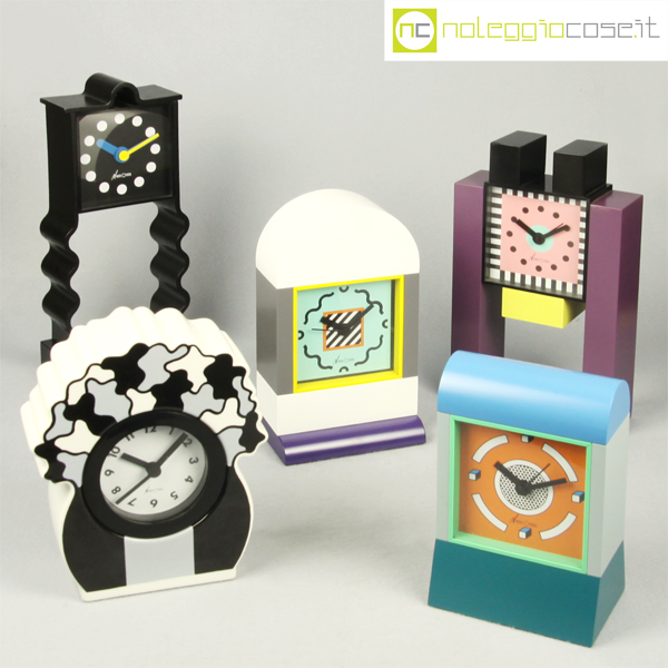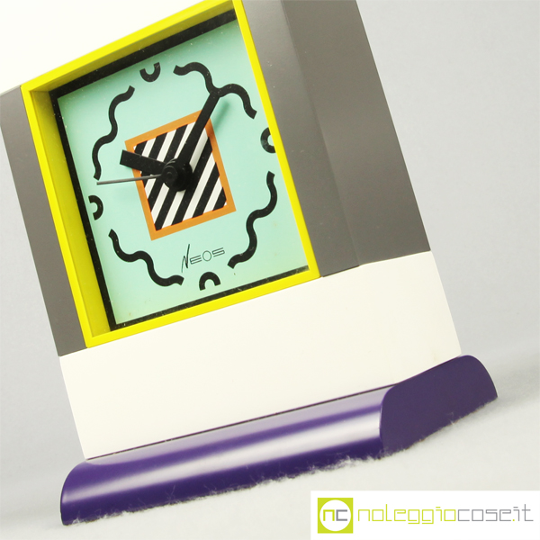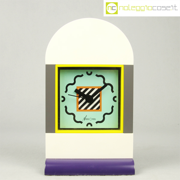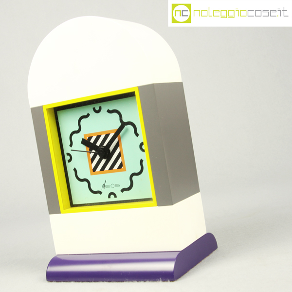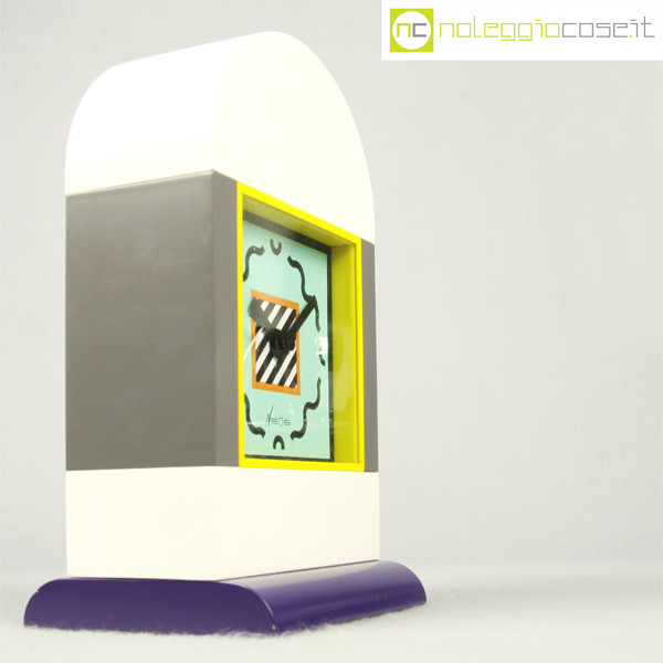 Lorenz, orologio serie NEOS bianco, grigio, viola, George Sowden, Nathalie Du Pasquier, 1988, cm 13×10 – h 23