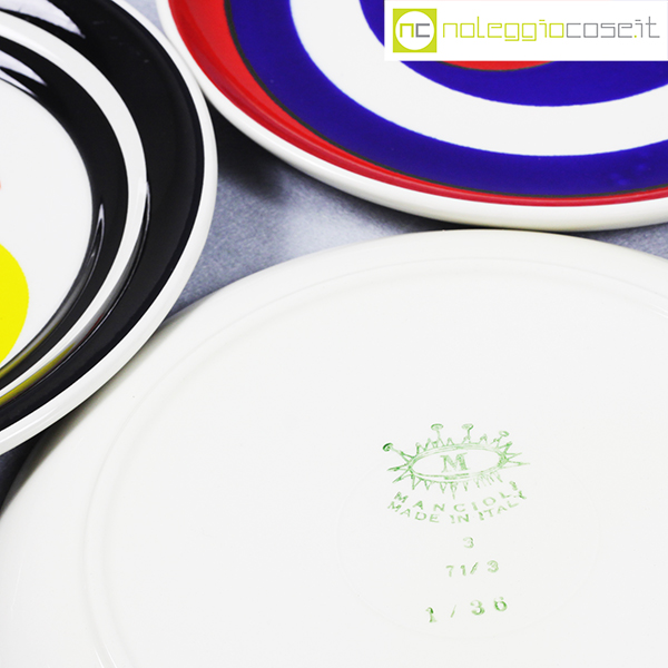 Mancioli Ceramiche, piatti serie “Beat” set 02, Giancarlo Casini, 1970, diametro cm 21,5 Torna alla categoria Ceramiche