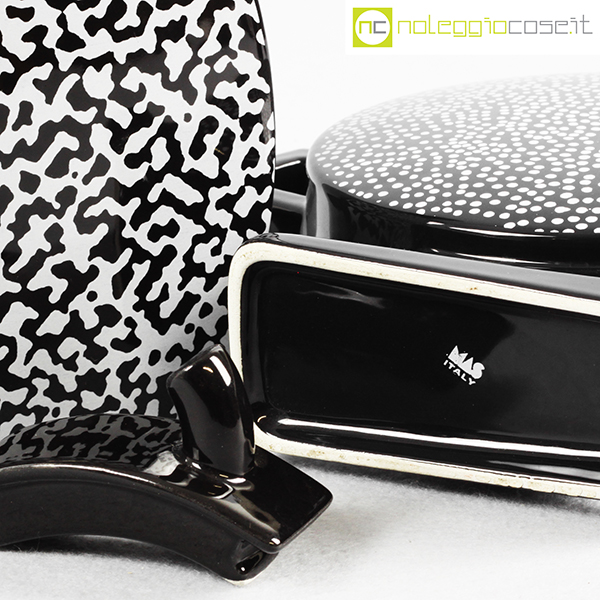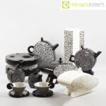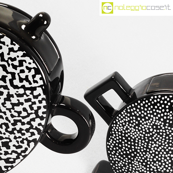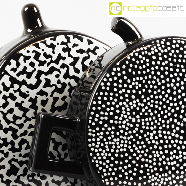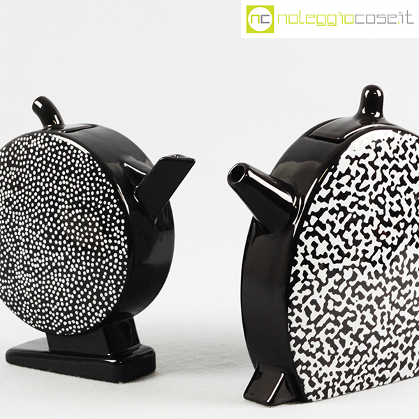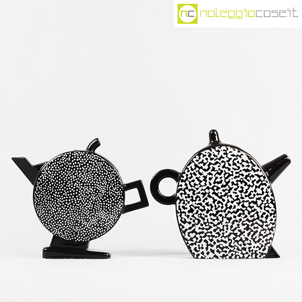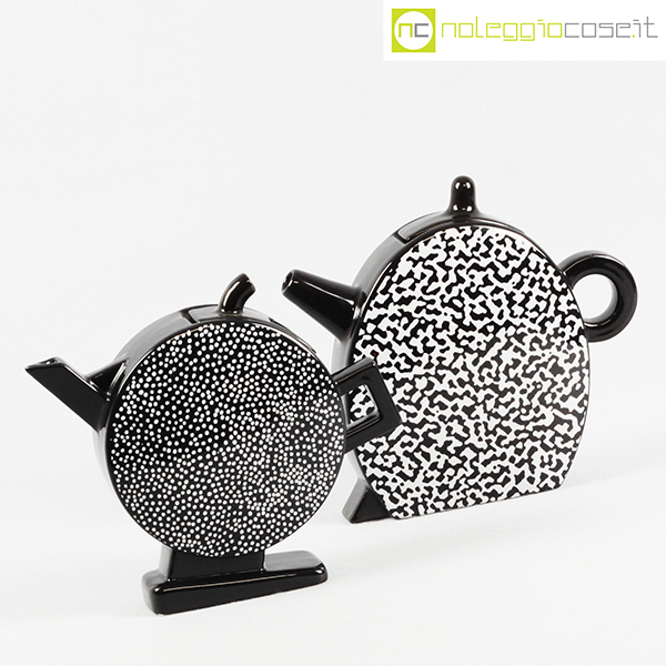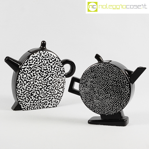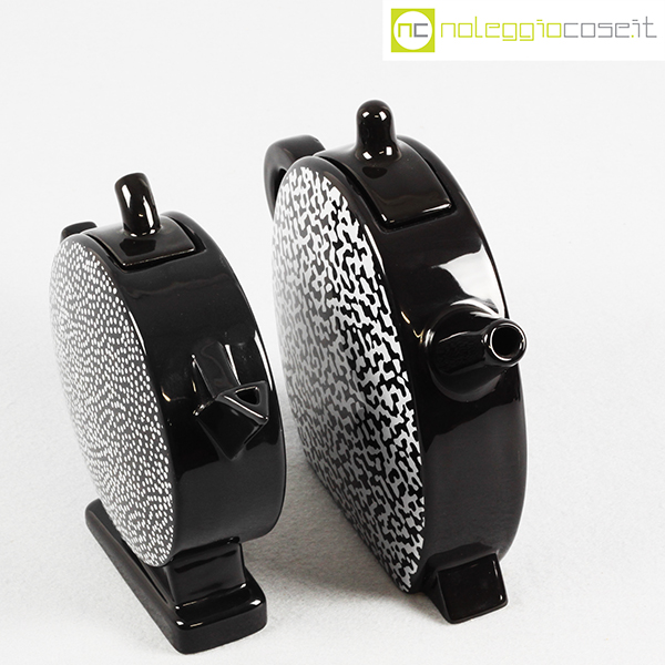 Mas Ceramiche, coppia teiere nere postmodern, Massimo Materassi, 1985, teiera alta cm 24×5,5×22 – bassa cm 24x6x20