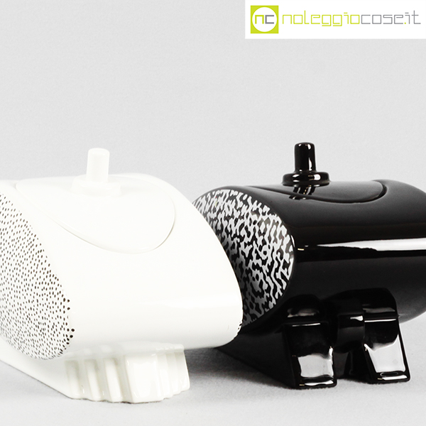 Mas Ceramiche, zuccheriera bianca e nera postmodern, Massimo Materassi, 1985, cm 24×12 – h 15