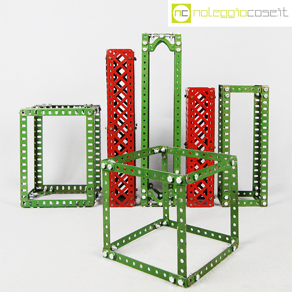 Meccano, costruzioni SET 02, dimensioni varie, verdi altezza cm 14, 20, 24, 35, rossi altezza cm 24, 32