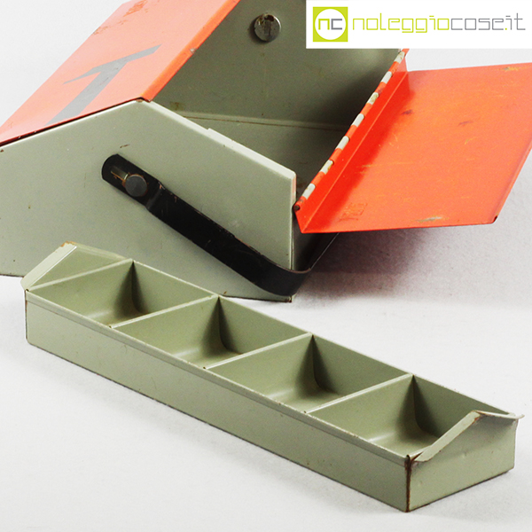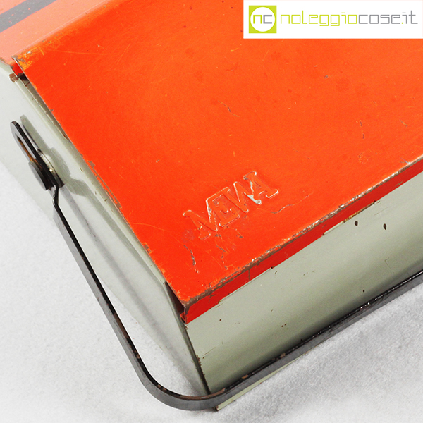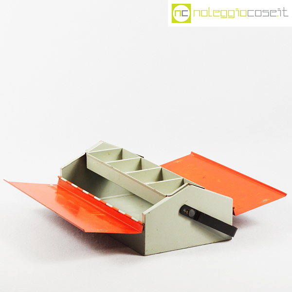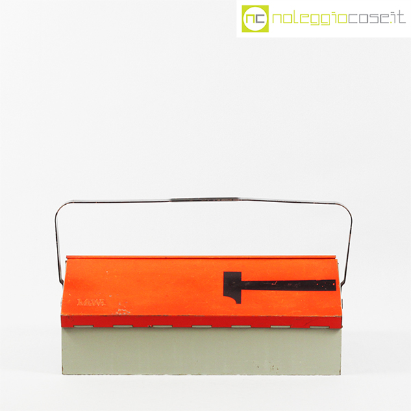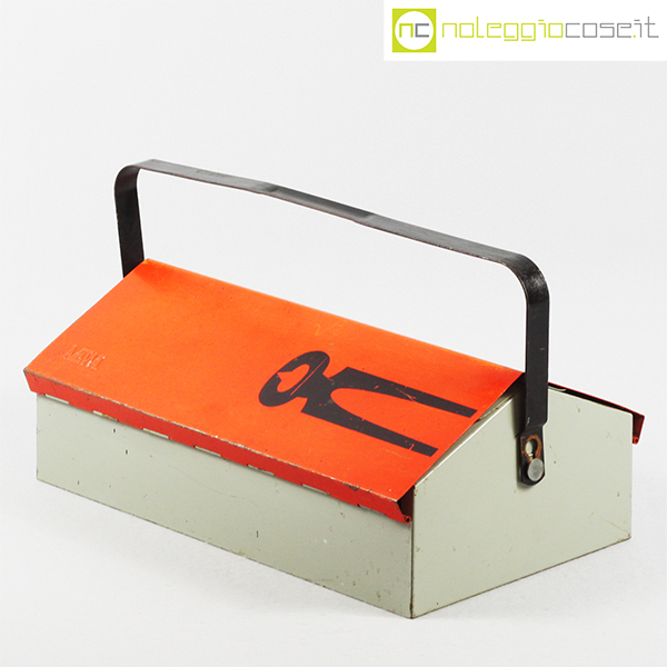 Mewa, cassetta porta attrezzi in metallo, Wilhelm Kienzle, anni’50, cm 40×23, altezza cm 14, con manico cm 21