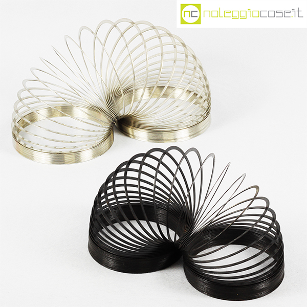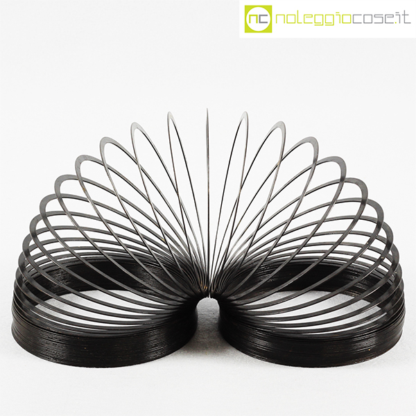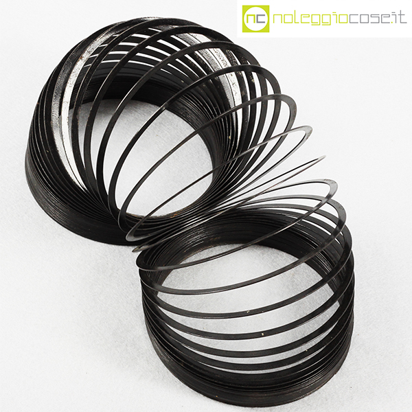 Molla Slinky, grande nera, giocattolo in metallo, anni ’90, diametro cm 12