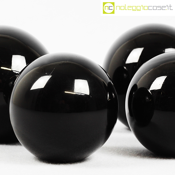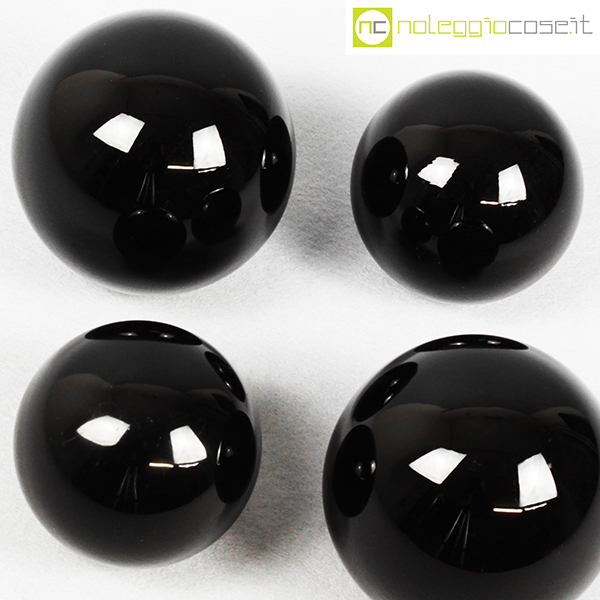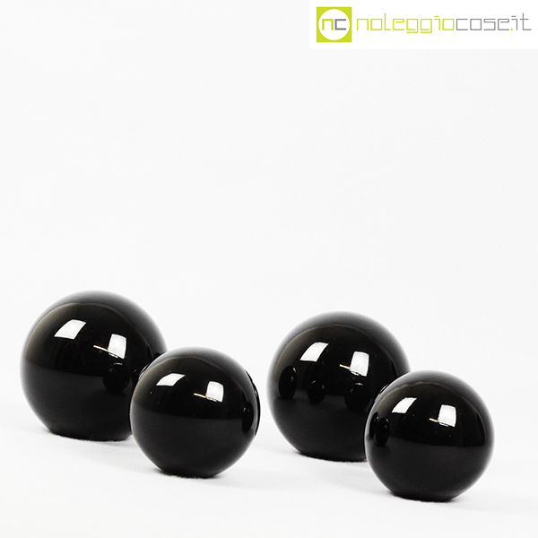 Nason Murano, sfere in vetro nero, Vincenzo Nason, 1980, grandi cm 8,5×8,5×8,5, piccole cm 7x7x7