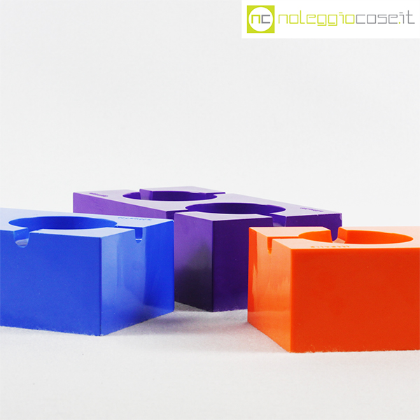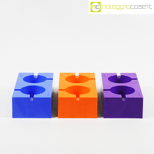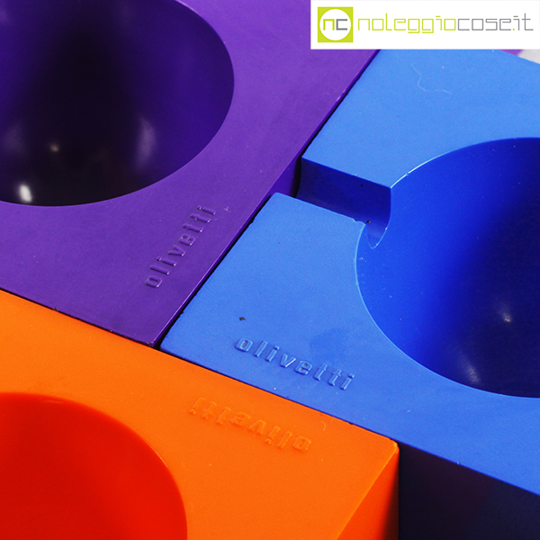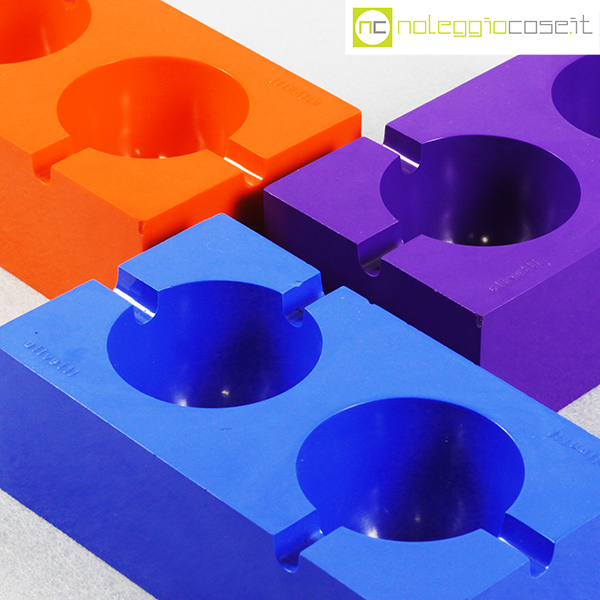 Olivetti, posacenere viola, arancione e blu piccoli, Giorgio Soavi, 1965, cm 15×8 – h 4,5