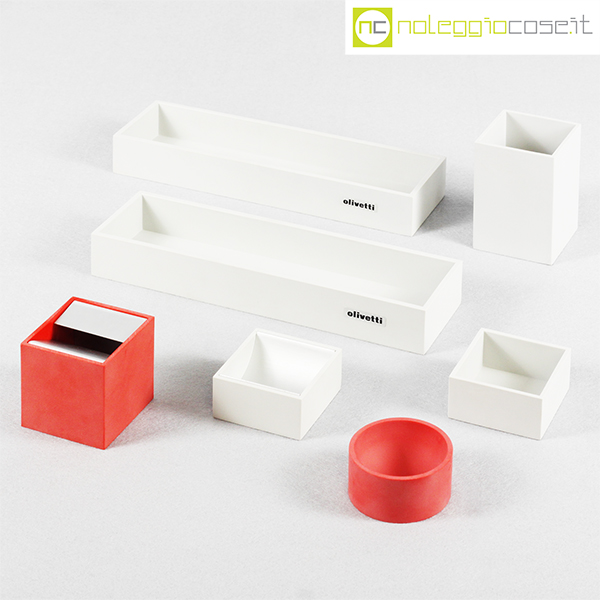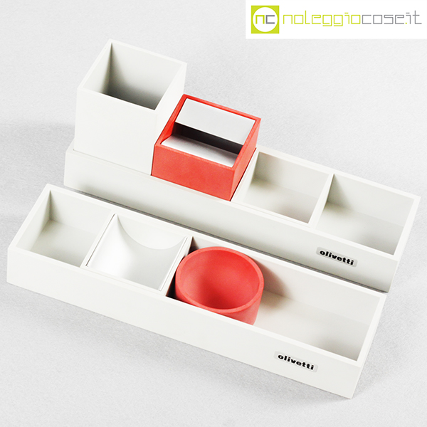 Olivetti, set da scrivania bianco, Bruno Munari, 1960, cm 25×7 – h 6,5