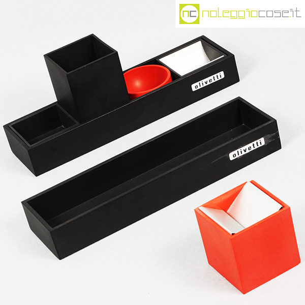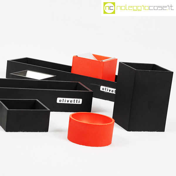 Olivetti, set da scrivania nero, Bruno Munari, 1960, cm 25×7 – h 6,5