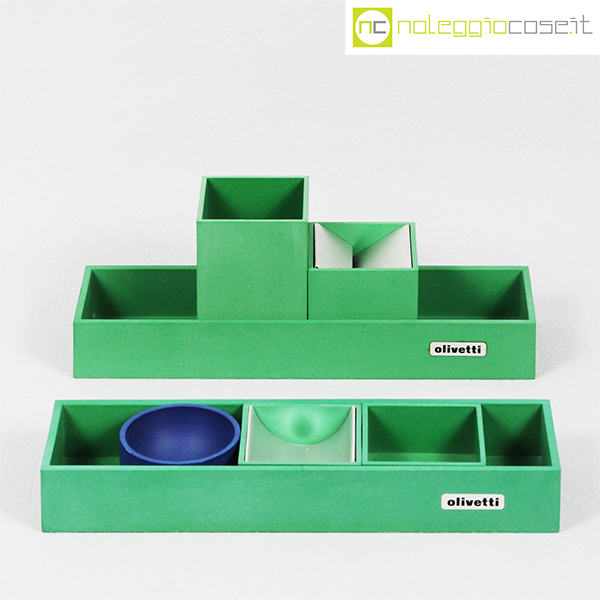 Olivetti, set da scrivania verde, Bruno Munari, 1960, cm 25×7 – h 6,5