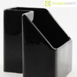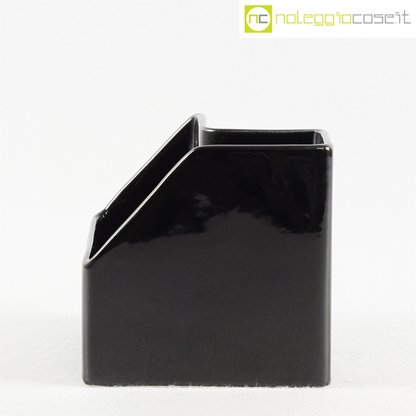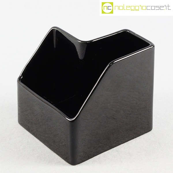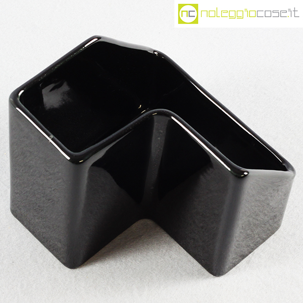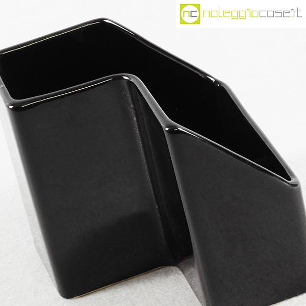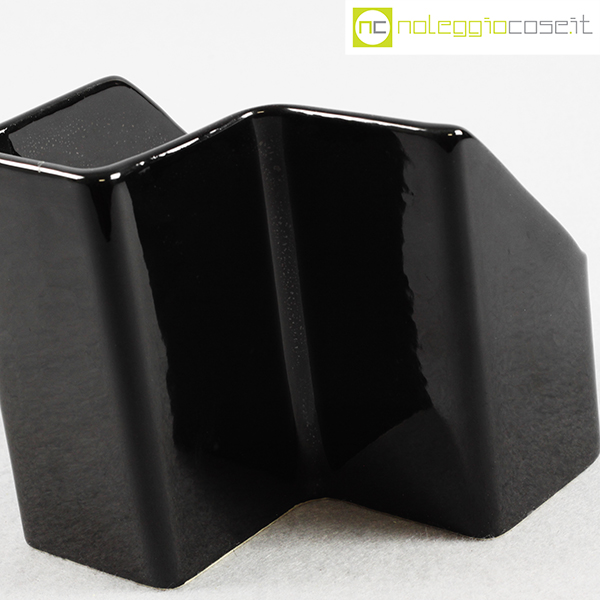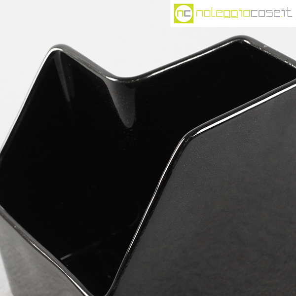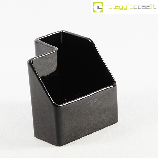 P.U.K., vaso in ceramica nero, anni ’70, cm 12×12 h 12