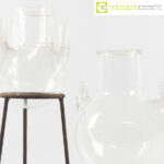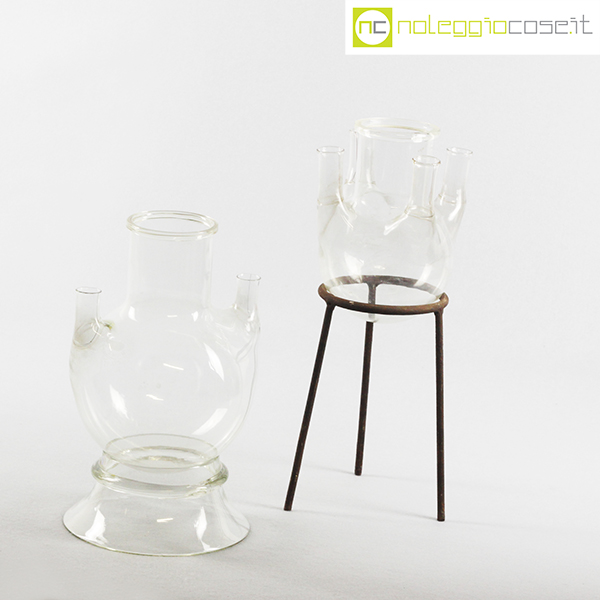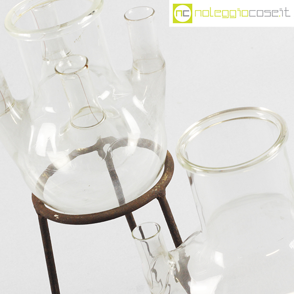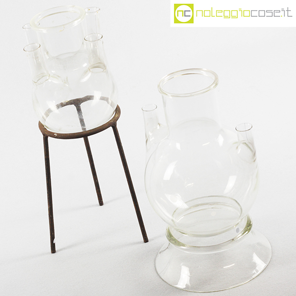 Palloni da laboratorio in vetro con base, base acciaio cm 15,5×15,5×37, base vetro cm 18×16,5×29