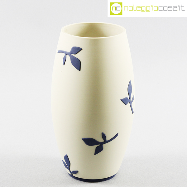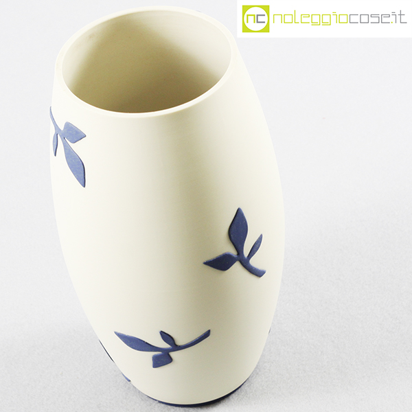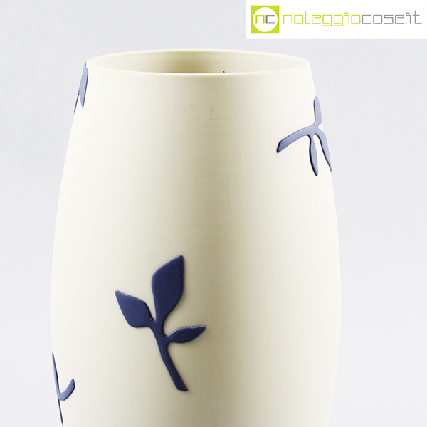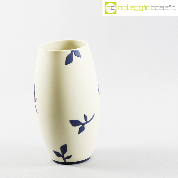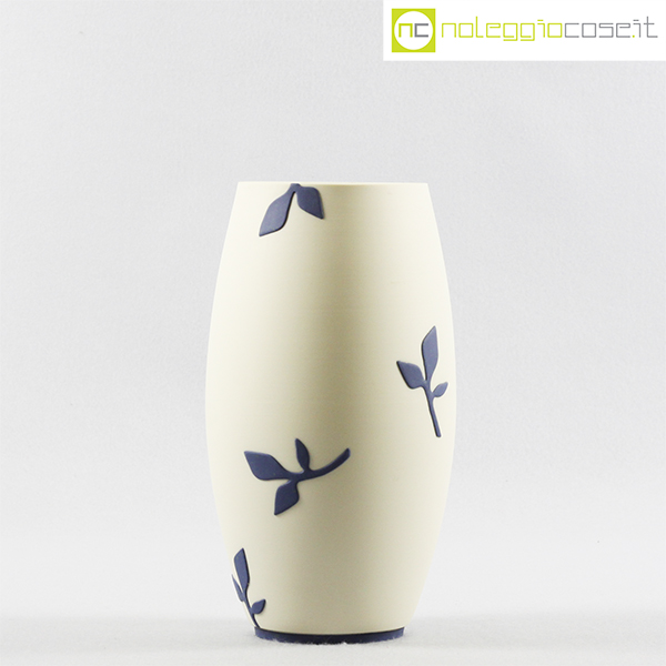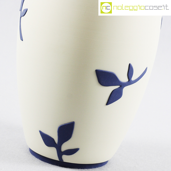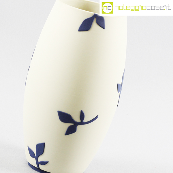 Paola Lenti, vaso bianco decori blu, 1995, cm 13×13 – h 24