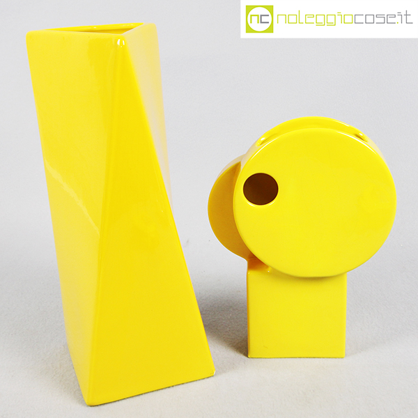 Parravicini Ceramiche, coppia vasi colore giallo, vaso alto cm 12x12x30, vaso con foro cm 16,5x6x22,5