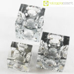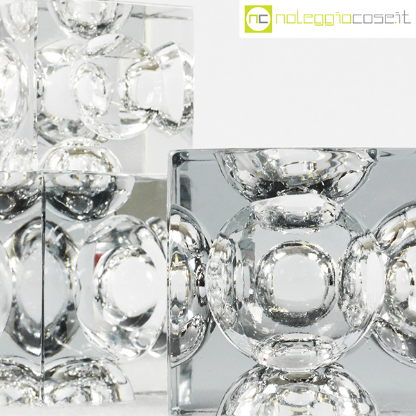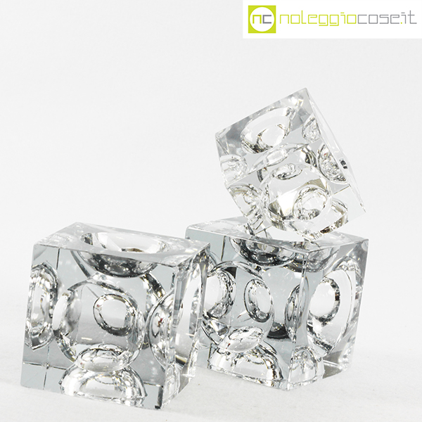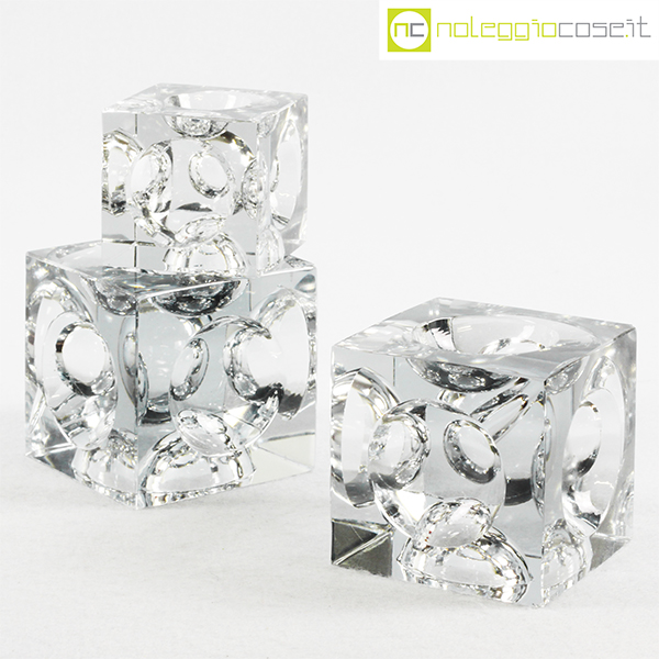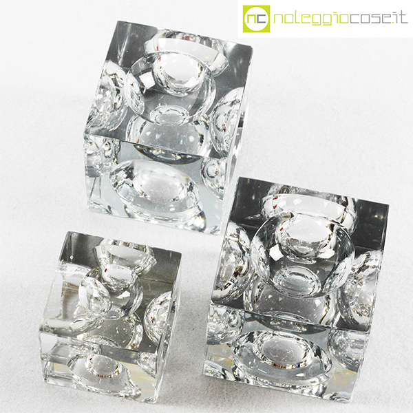 Poliarte, cubi fermacarte in vetro, Albano Poli, anni ’70, piccolo cm 6,5×6,5×6,5, grandi cm 8x8x8