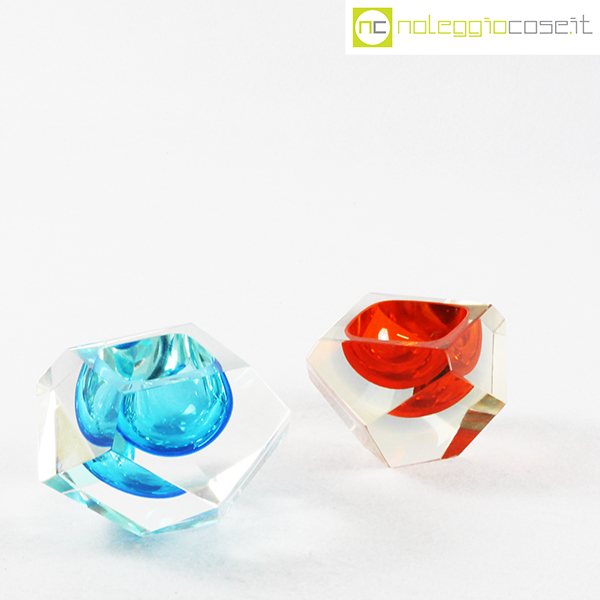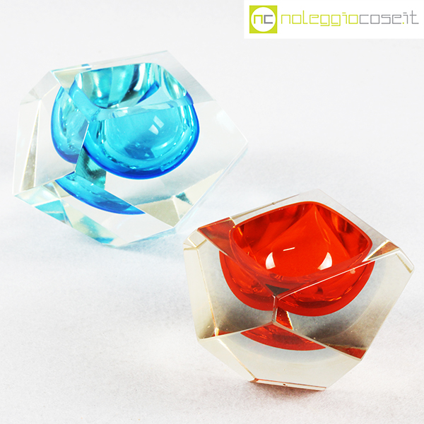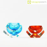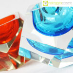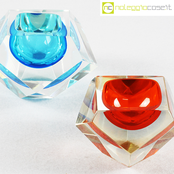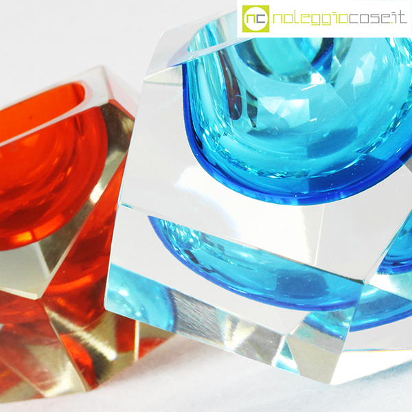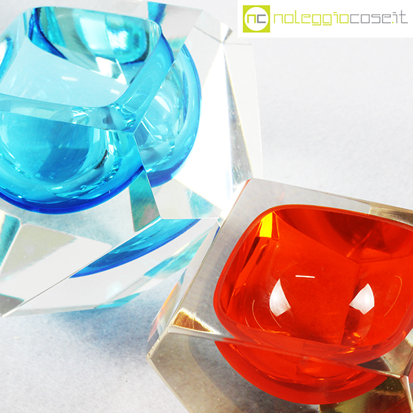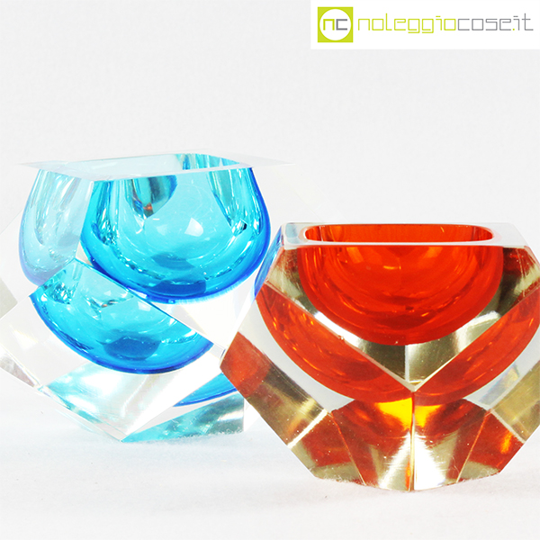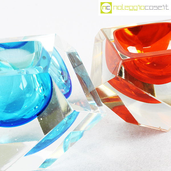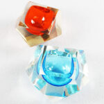 Posacenere sfaccettati in vetro di Murano, anni ’70, azzurro cm 14x14x8,5, arancione cm 11x11x7