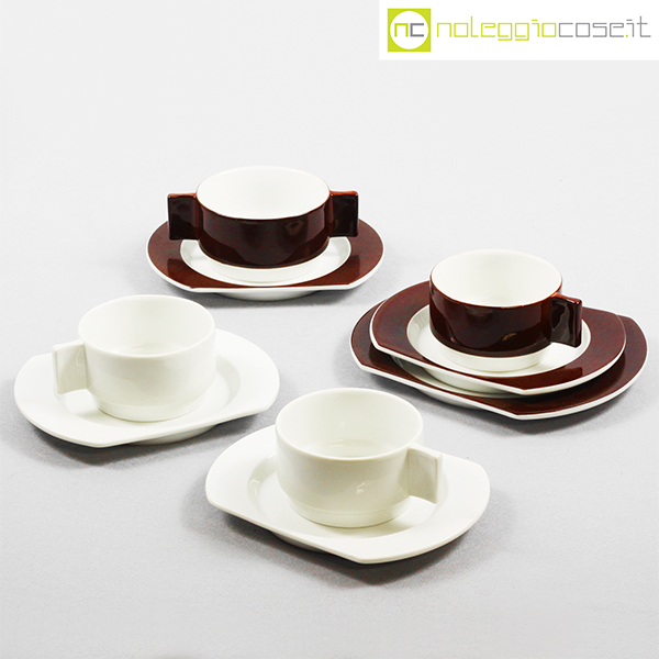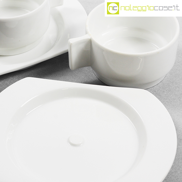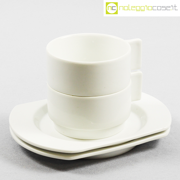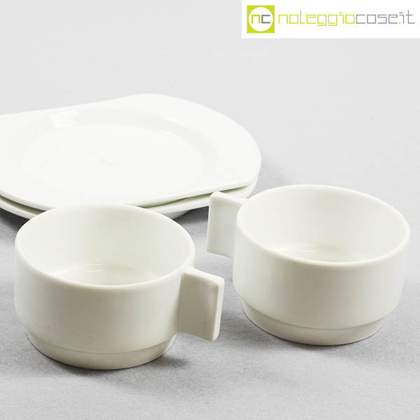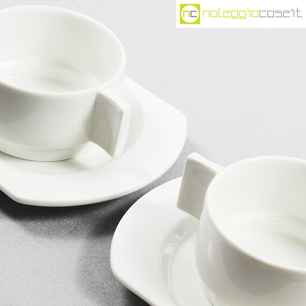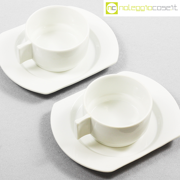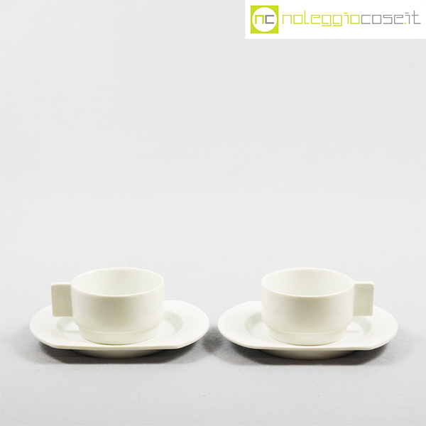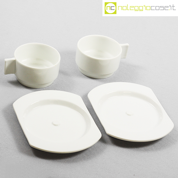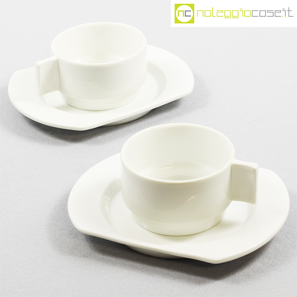 Richard Ginori per Alitalia, servizio di bordo Linea 72 bianco, Joe Colombo, Ambrogio Pozzi, 1970, tazza cm 11×8,5×5, piattino cm 17×13